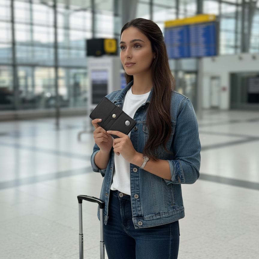 All-in-one travel wallet with RFID protection and AirTag holder —organized, secure, and ready for every journey.